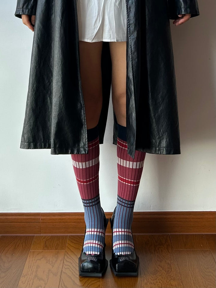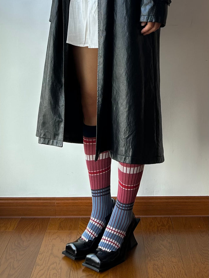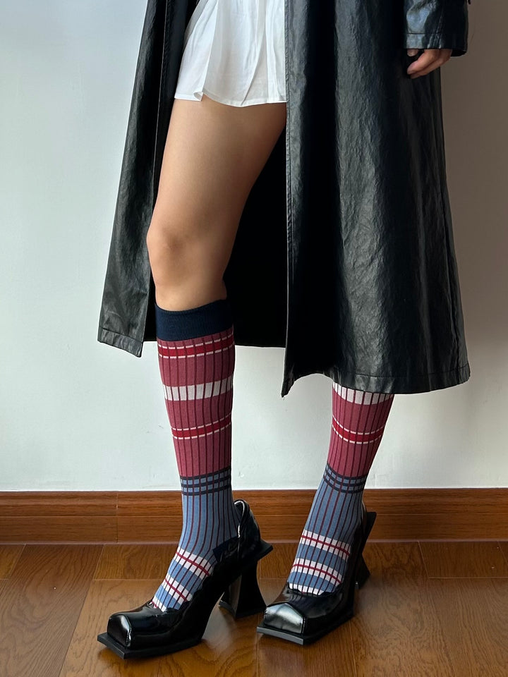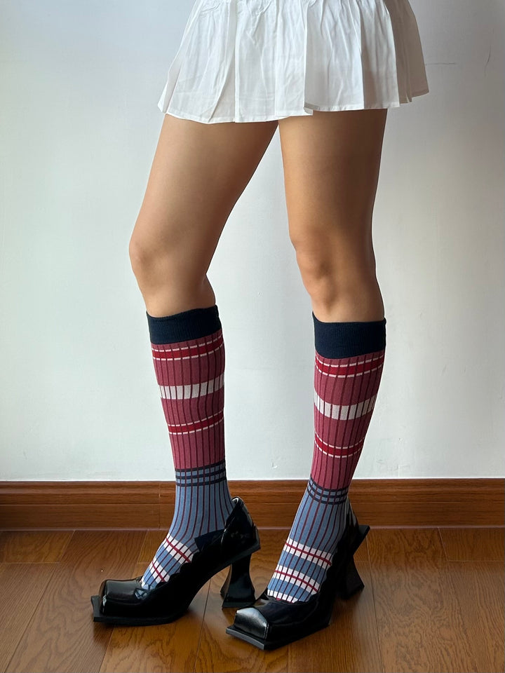 Blue + Red Stripe Cotton Knee High Socks