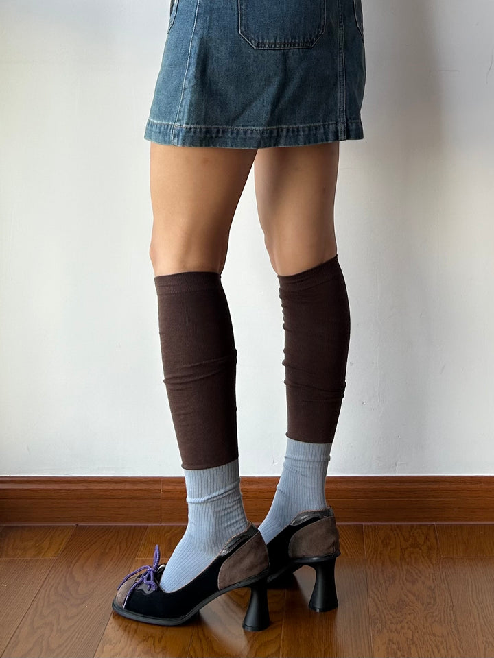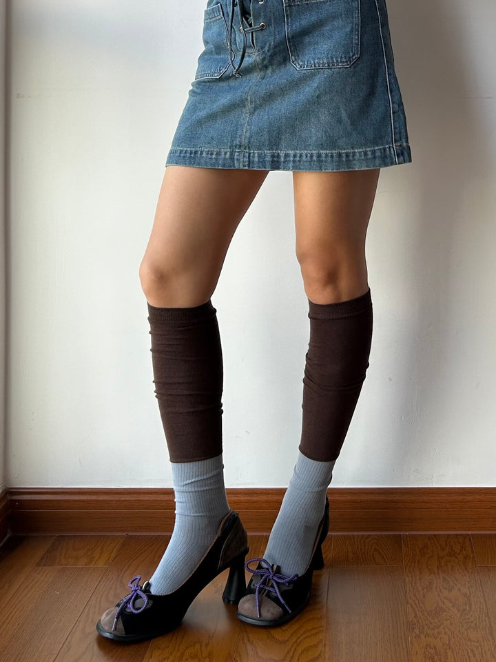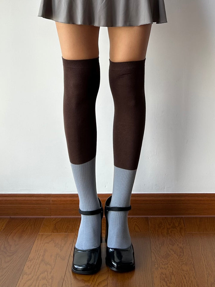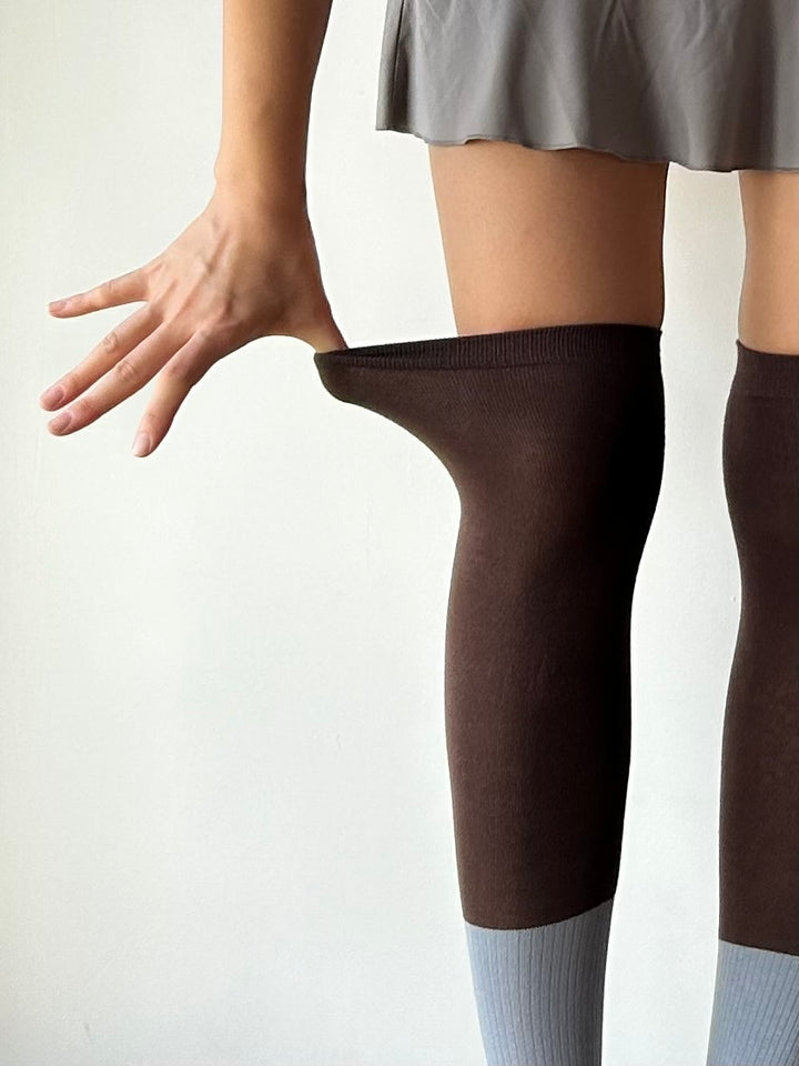 Brown + Smoky Blue Cotton Over the Knee Socks