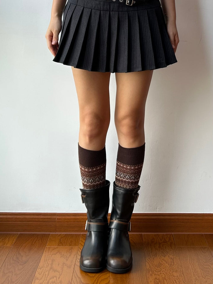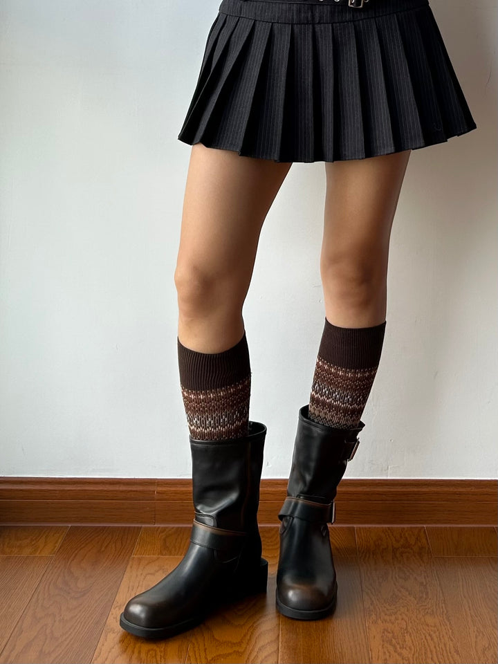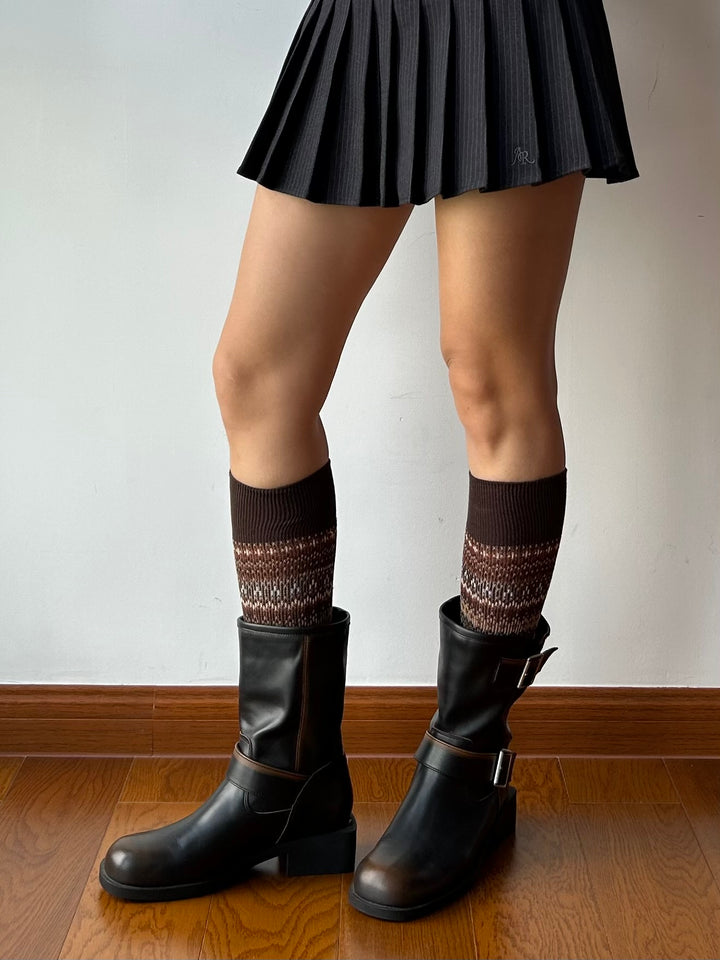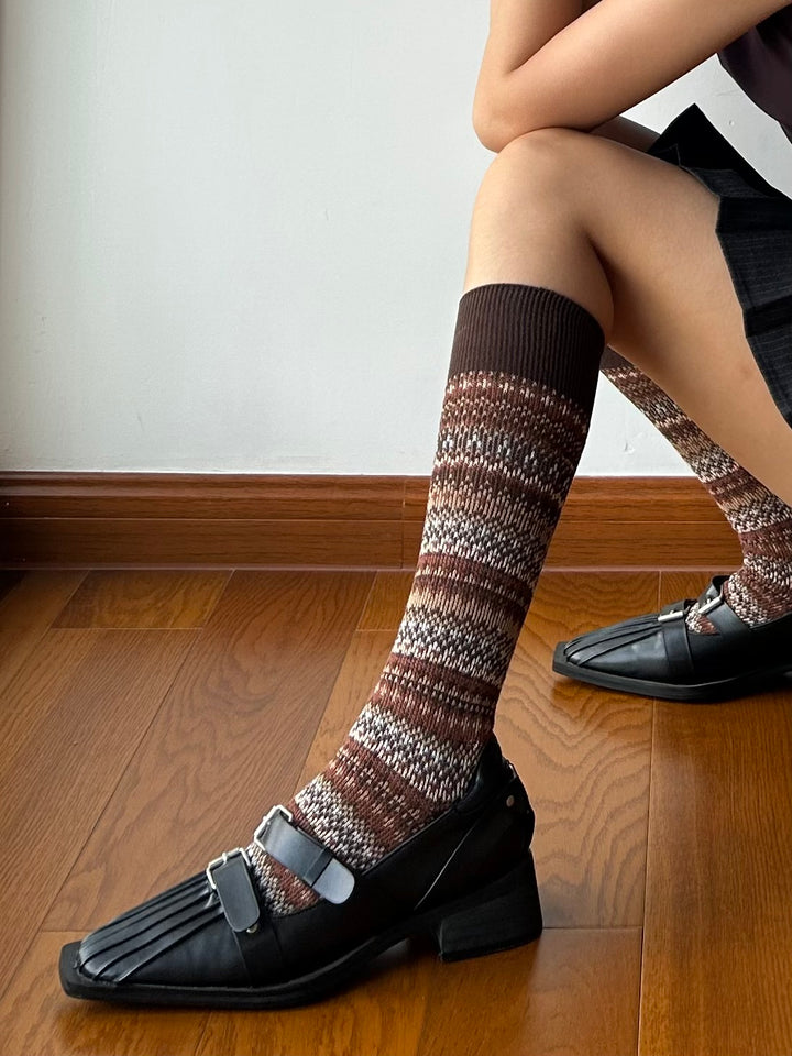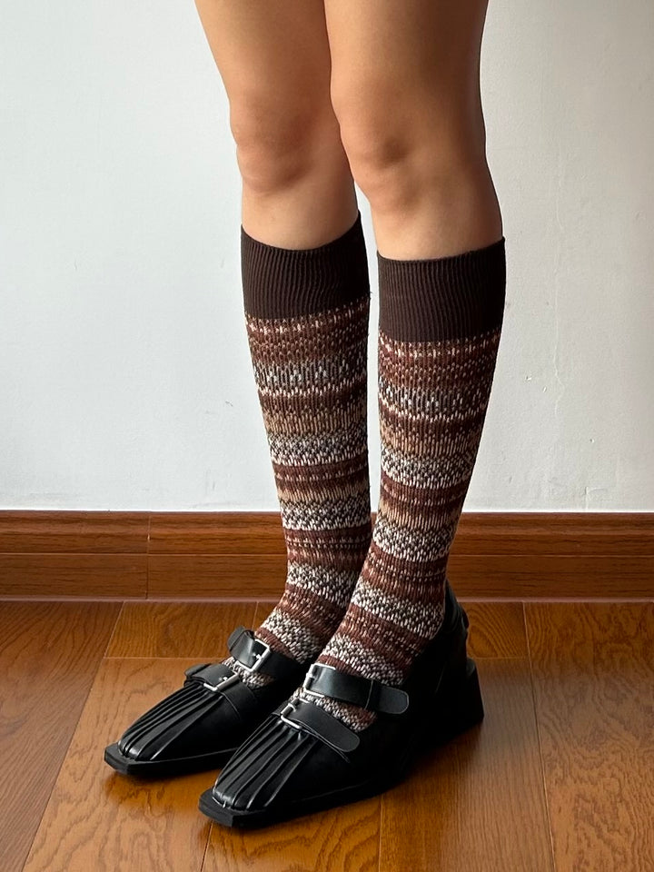 Brown Vintage Inspired Combed Cotton Knee High Socks