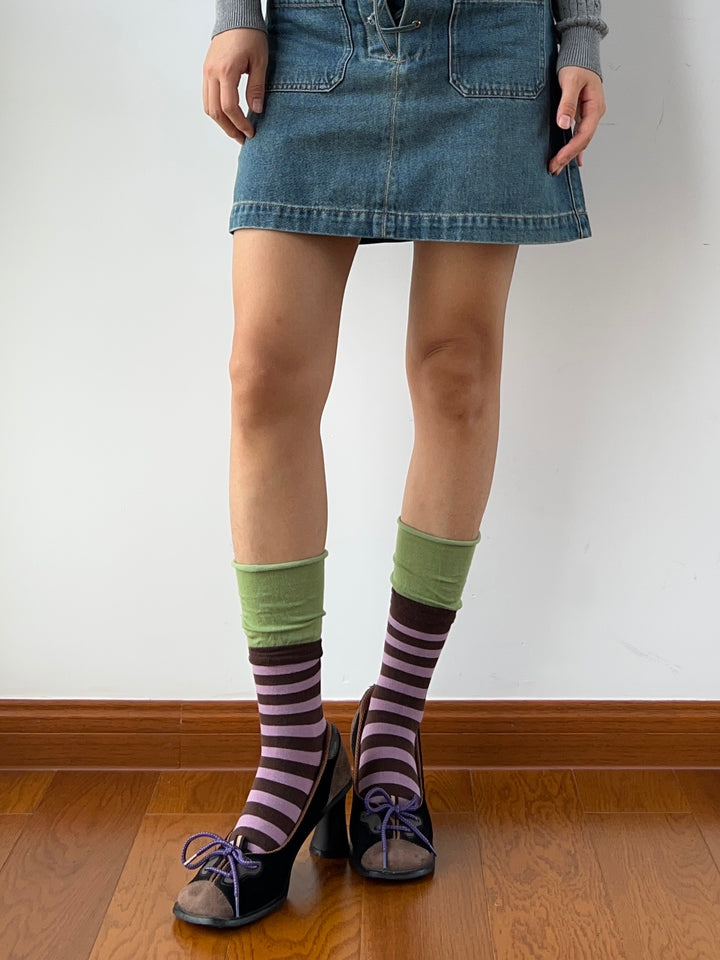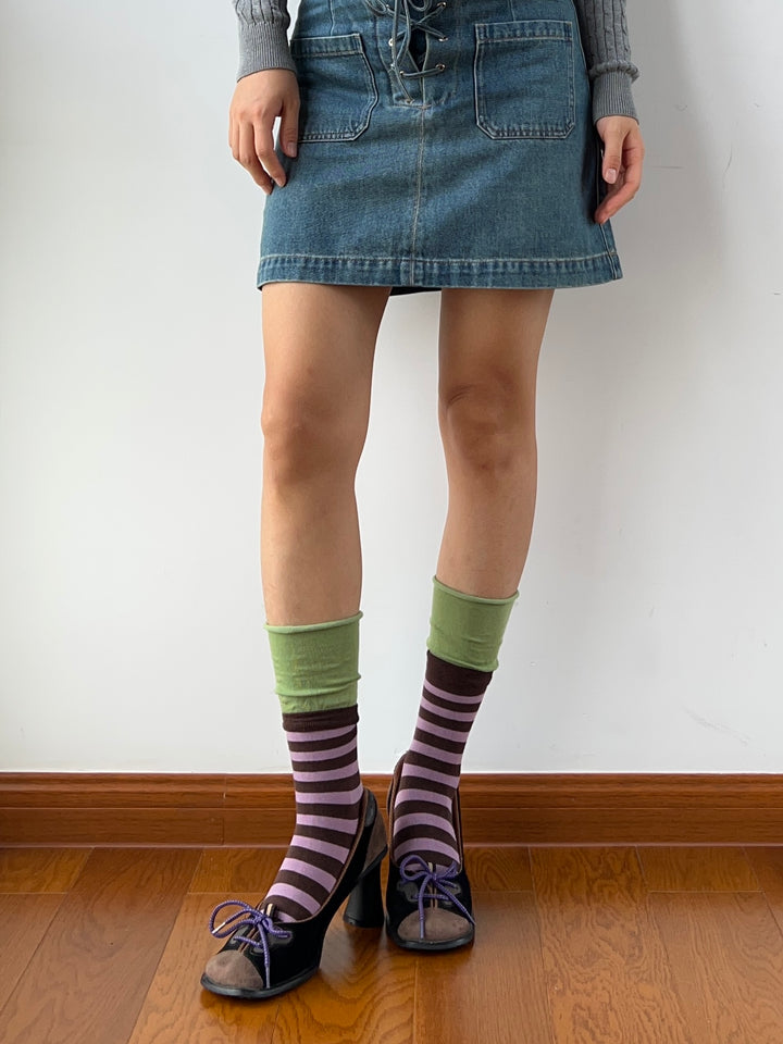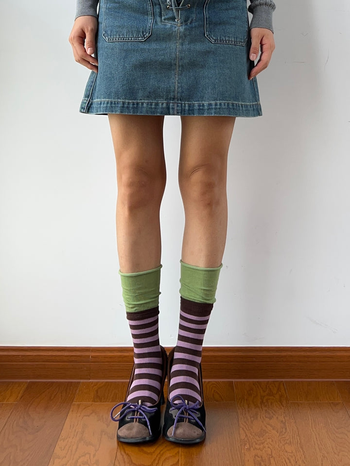 Green+Purple Stripe Crew Socks