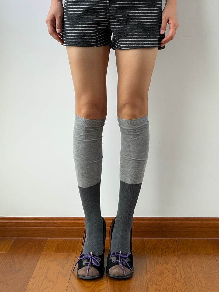 Grey Contrasting Cotton Over the Knee Socks