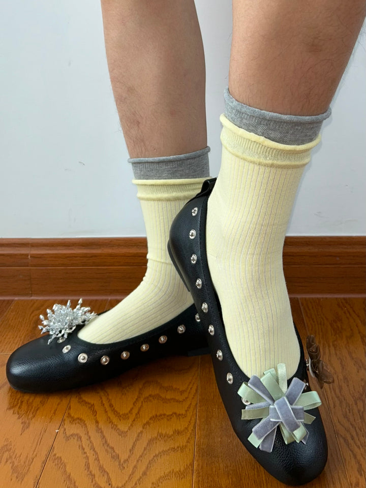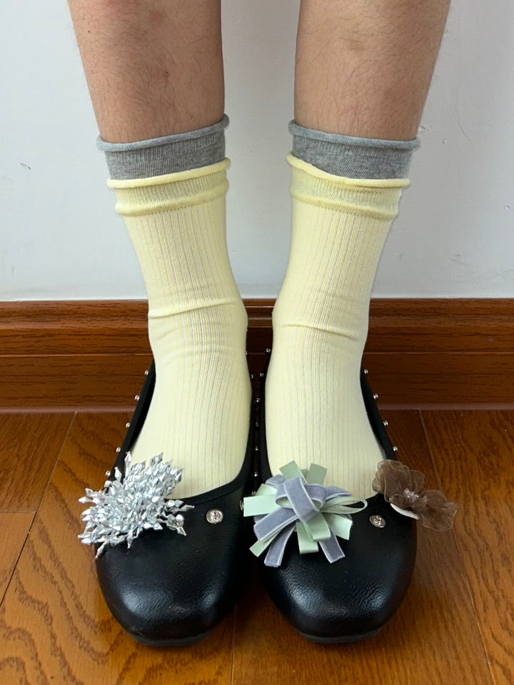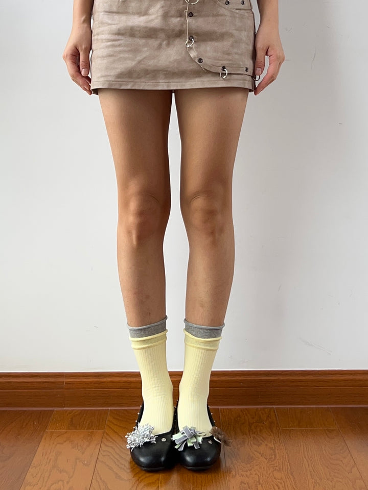 Upgraded Yellow Contrasting Cotton Crew Socks