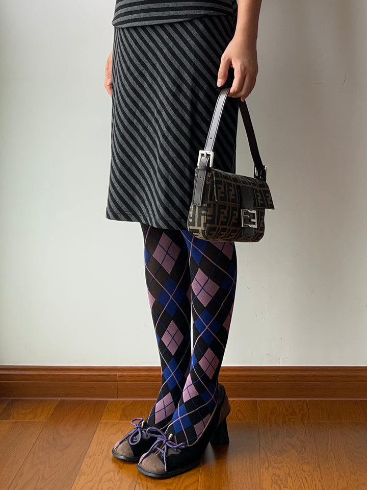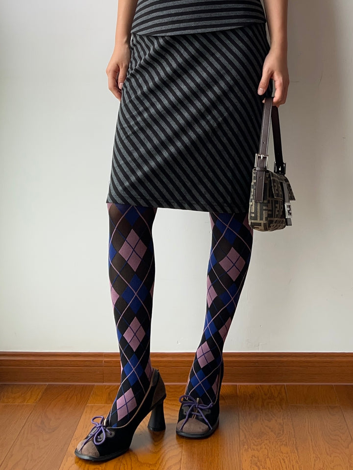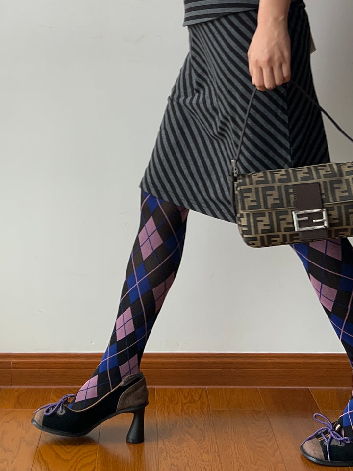 Vintage Style Purple Check Pattern Tights