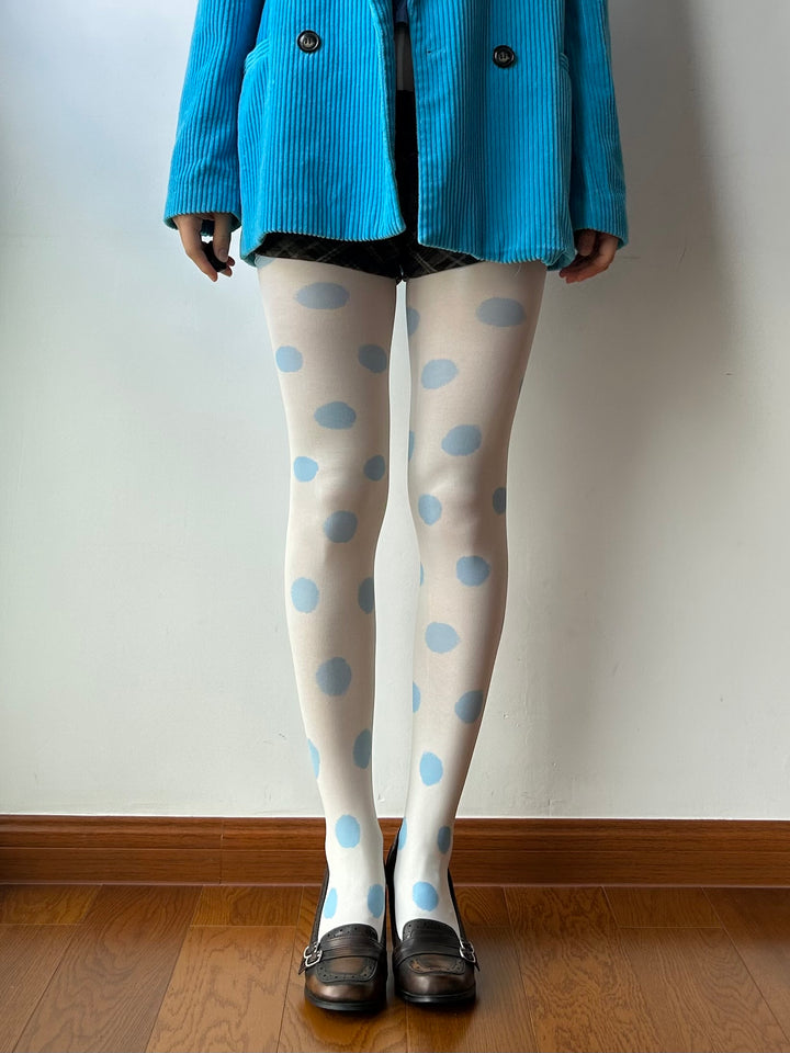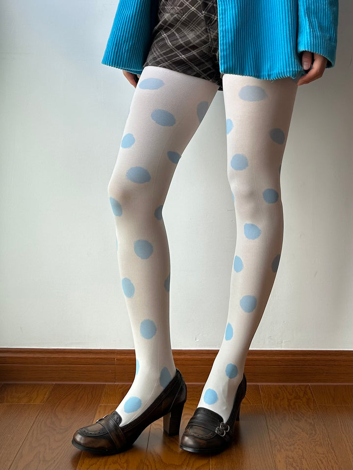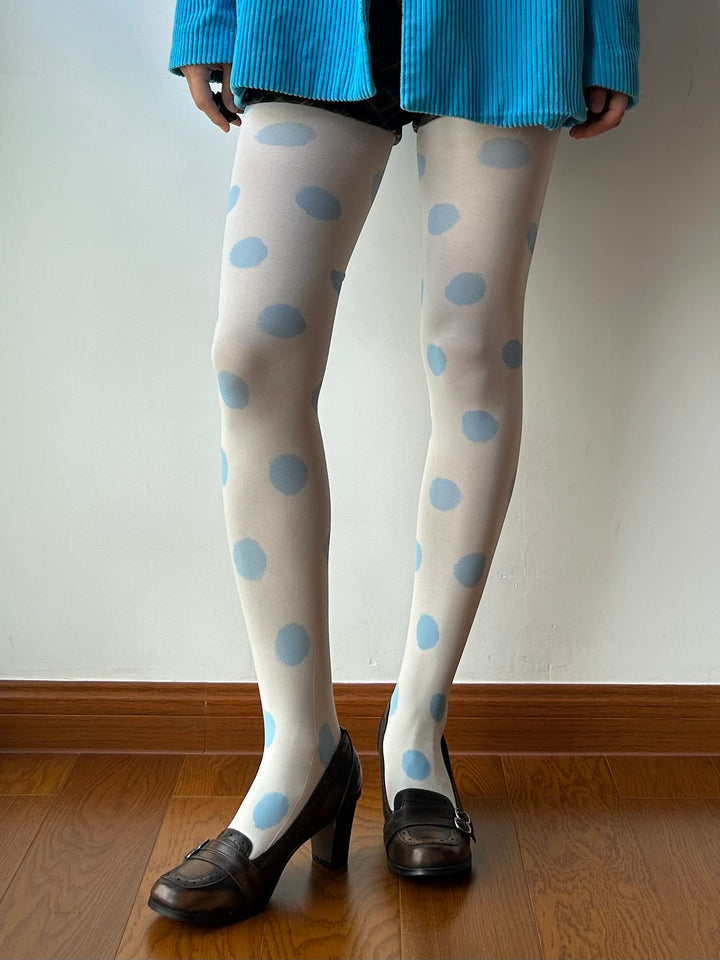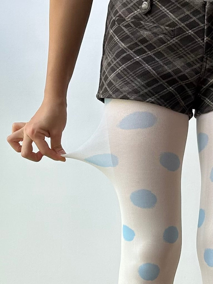 Cream Brushstroke Polka Dots Print Velvet Tights