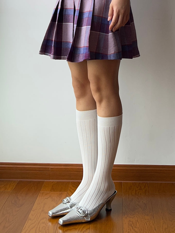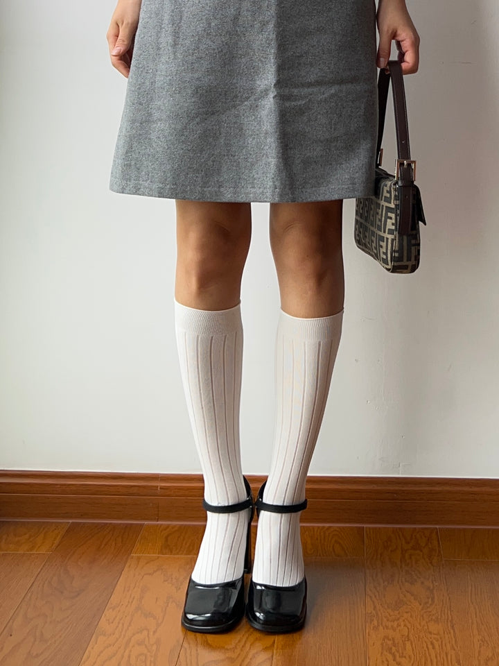 White 240 N Cotton Knee High Socks